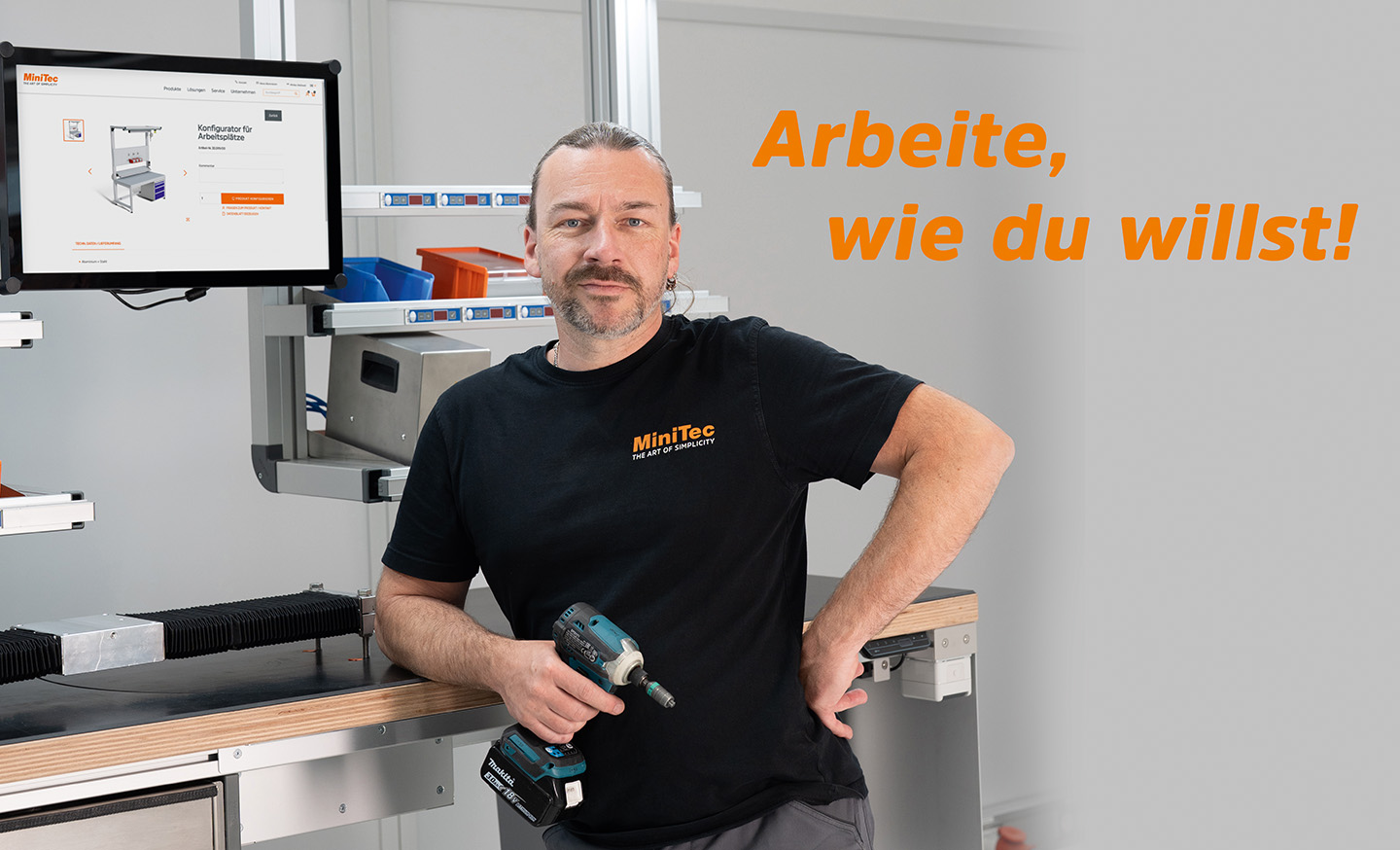 Arbeite, wie du willst: MiniTec-Arbeitsplätze lassen sich an die individuellen Wünsche der Mitarbeiter anpassen. mehr erfahren