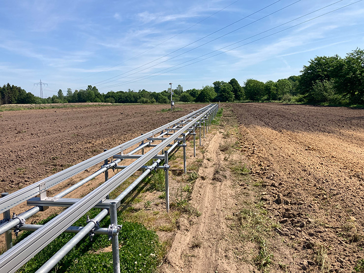 After several months of development including digital pre-tests, the facility was finally built and handed over to its intended use in July 2022. Since then, the environment with the various boundary conditions in agriculture has been recorded on the test field by means of a carrier vehicle equipped with different sensor technology (such as laser scanner, stereo camera, time-of-flight camera, ultrasound and radar). This is guided accurately and reproducibly along the track course through the field setting. Together with the metadata of the surveys, such as weather conditions or time of day, the raw data provide the necessary database for control based on algorithms. The railroad operates automatically and can be controlled and monitored remotely. The movements of the measuring carriage, affectionately christened "Dolly" by the development team, are generated by a servo motor via a cable.