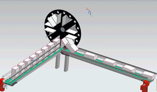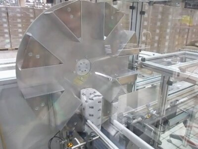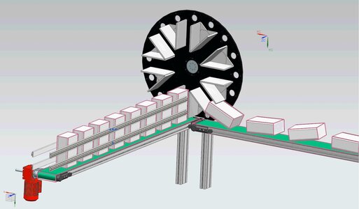 MiniTec schlug daher vor, einen so genannten „Wendestern“ für diesen Vorgang einzusetzen. Dabei handelt es sich um eine kreisförmige Konstruktion, bei der die Kaffeepäckchen beim Drehen von Schaufeln nach vorne umgelegt werden. Vor der Realisierung galt es jedoch zu prüfen, ob dies auch in der Praxis funktioniert. Gerade wegen der hohen Takt-Geschwindigkeit wollte man sicherstellen, dass es später keine Probleme gibt, dass die Pakete z.B. nicht hängen bleiben oder aufplatzen.