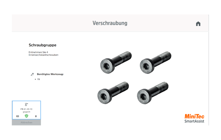 Mit dem neuen Modul „Schrauber-Anbindung“ können Anwender des Werker-Assistenzsystems MiniTec SmartAssist ab sofort Schraubvorgänge über Industrieschrauber in die Montageprozesse einbinden.