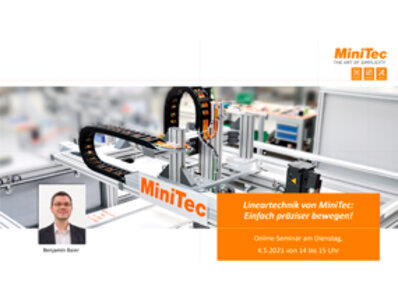 Erhalten Sie in unserem Online-Seminar einen praxisorientierten Überblick zur Lineartechnik von MiniTec. Erfahren Sie alles Wichtige über Einsatzbereiche und Funktionalität der verschiedenen Bausteine und Systeme und lernen deren Vorteile kennen!