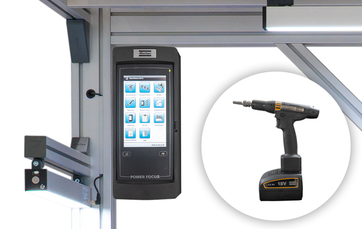 Der Monitor zeigt alle Arbeitsschritte samt Hilfsmitteln an. Die Bestätigung kann per Touch, Tastatur oder Buzzer erfolgen.