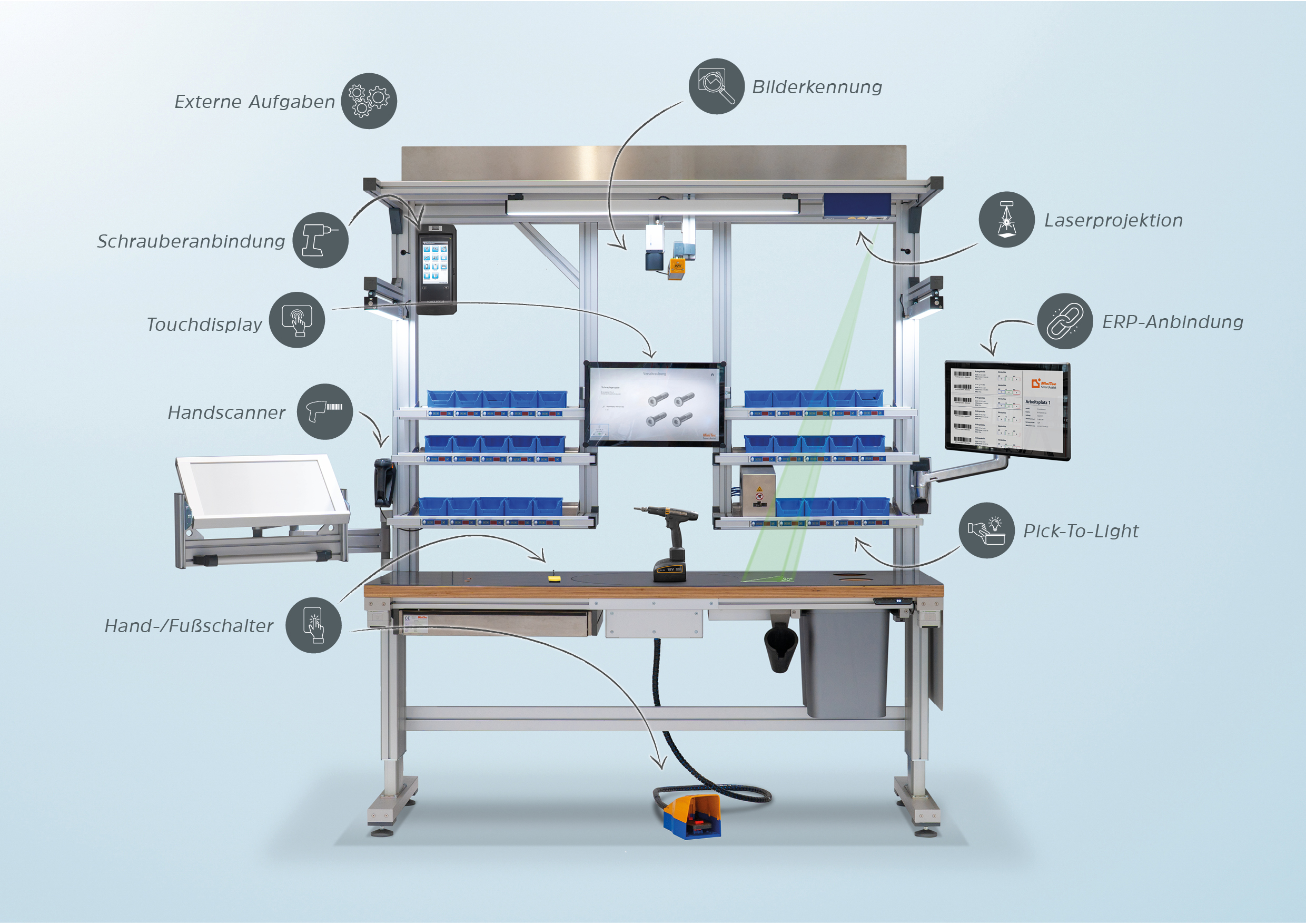 Mit dem MiniTec SmartAssist Werkerführungssystem setzen Sie auf digitale Montageunterstützung der nächsten Generation. Das System begleitet Ihre Mitarbeiter Schritt für Schritt durch den Montageprozess – mit Texten, Grafiken, Fotos und Videos direkt am Bildschirm. Dank seines modularen Aufbaus lässt sich SmartAssist flexibel an unterschiedliche Arbeitsplätze anpassen und mit Pick-to-Light-Lichtleisten, Touch-Monitoren, Eingriffssensoren, Waagen und weiterer Hardware kombinieren.